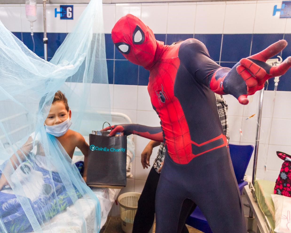 On August 19, a group of loving volunteers visited Hospital Universitario Antonio Patricio de Alcalá (HUAPA) in Cumaná, Venezuela. Wearing costumes and acting as cartoon characters such as Spider-Man and Elsa popular with children, they shuttled between pediatric wards while carrying books and toys as gifts to sick children in the hospital. This is a charity event meticulously planned by CoinEx Charity, a global charity, for kids suffering from illness in Venezuela. During the event, the organization hired actors to play cartoon characters and provided sick kids with gifts, including 500 cakes, 300 fruit packages, and 130 toys. CoinEx Charity hopes that the warmth and fun brought by the cartoon characters and gifts could ease their pain and help them forget about their illness for a while.