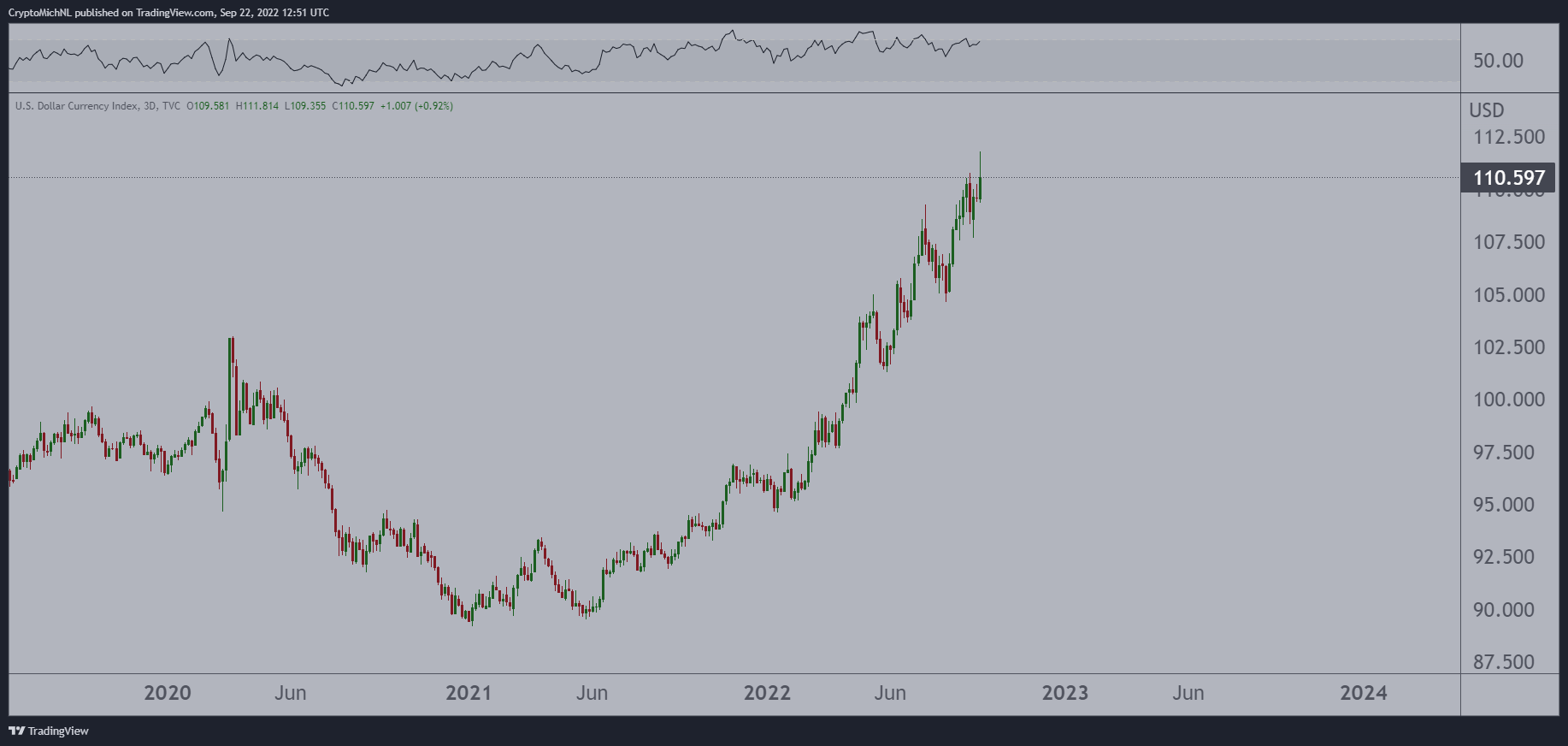 In light of yesterday’s 75 basis points interest rate hike, Van de Poppe says the crypto markets are reacting favorably for crypto, especially the US Dollar Index (DXY).