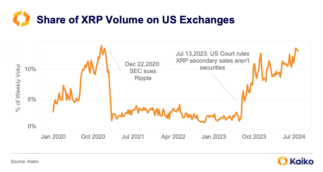 After a long, drawn-out lawsuit with the U.S. Securities and Exchange Commission (SEC) that ultimately ended in the ruling that XRP sold on exchanges does not constitute a security, Kaiko says demand for XRP is back.