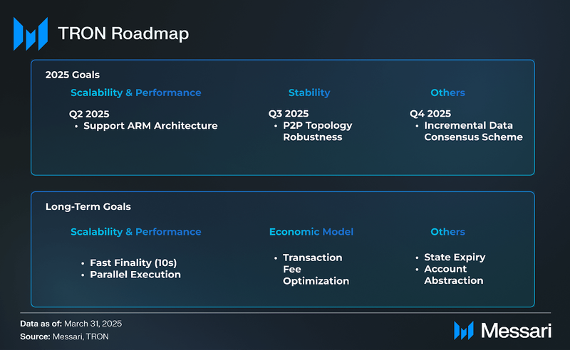 In 2025, TRON will focus on enhancing network performance and scalability through initiatives like support for ARM architecture and parallel transaction execution. Economic model improvements, such as dynamic transaction fee adjustments, aim to strengthen the ecosystem’s sustainability. In the long term, TRON plans to explore other areas like account abstraction and state data expiration to ensure robust infrastructure and future adaptability.
