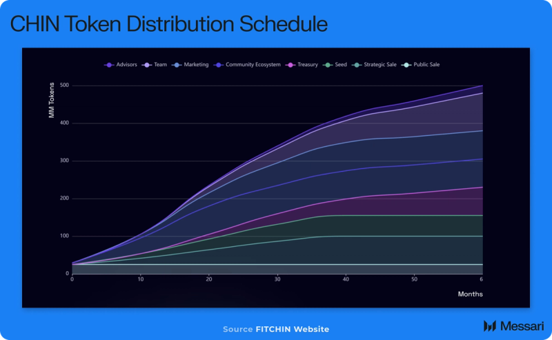 - Advisors: 30,000,000 CHIN, 6-month cliff, followed by linear unlock over 30 months.