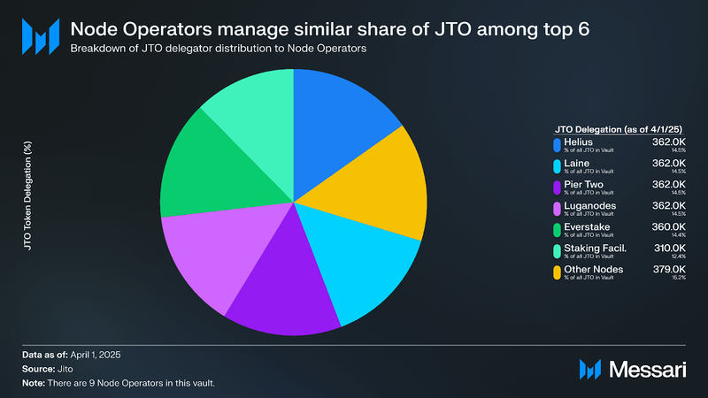 The NOs with the highest allocations of the underlying assets in the kyJTO vault are Helius, Laine, Pier Two, and Luganodes, each with 362,000 JTO allocated (14.5% of 2.5 million JTO).