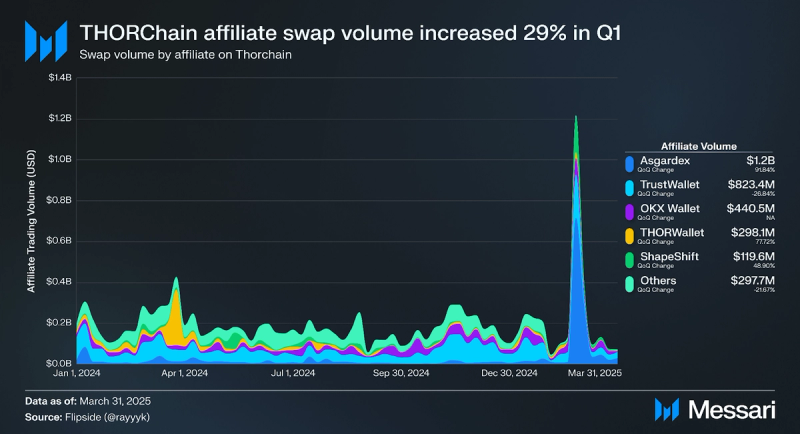 - Despite market headwinds, affiliate volume increased 29.7% QoQ, rising from $2.25 billion to $3.21 billion, with Asgardex leading all affiliates at $1.22 billion.