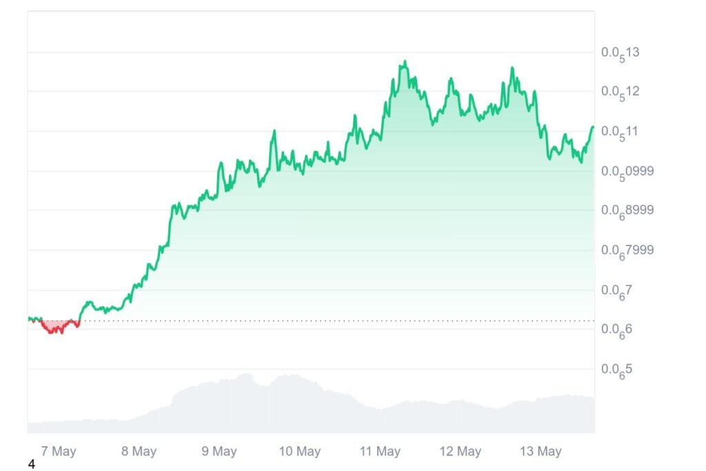 Currently priced at around $0.0000135, the token is up over 70% in the past seven days. Notably, it has broken through a significant resistance level, which has now turned into a new support zone—an encouraging sign for potential further gains.