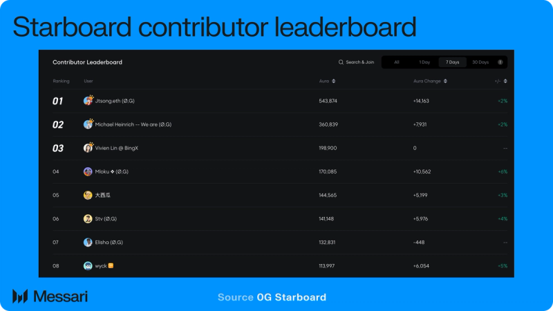 Contributor Data identifies high-impact individuals actively advancing a project’s growth. Projects that use Starboard can define success criteria, such as total value locked (TVL), user acquisition, or social engagement. Based on these preferences, they can generate custom leaderboards that surface contributors aligned with their goals.