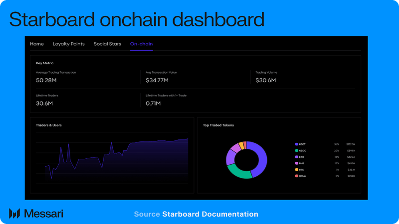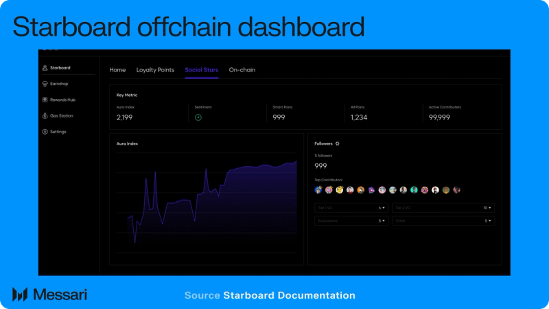 - Starboard brings together onchain and offchain metrics to give projects a holistic view on how best to grow. Starboard tracks social metrics through X/Twitter and also onchain metrics such as total value locked (TVL), gas spent, transaction count, and volume.
