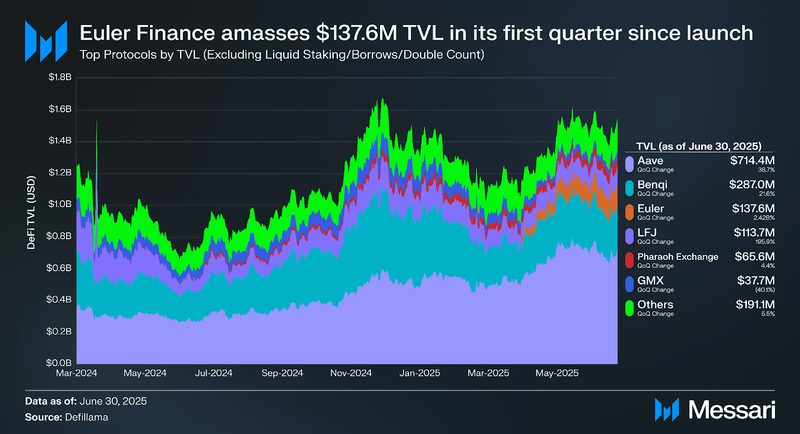 - Euler Finance launched on Avalanche in Q2 and quickly gained traction, ending the quarter with over $137.0 million in TVL. Euler Finance is a modular lending protocol that allows users to lend, borrow, and swap.