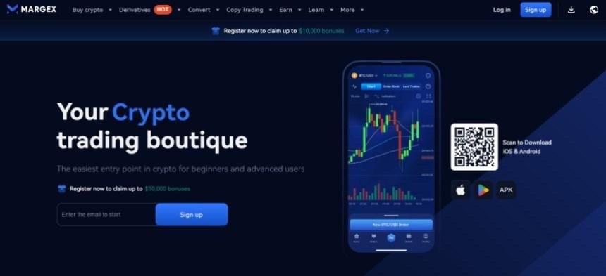 Margex is another Ethereum futures platform known for its no-KYC policy and strong focus on user privacy. Traders can access ETH perpetual futures with leverage up to 100x and enjoy an interface designed to mimic traditional derivatives terminals. The platform requires only an email address to start, with no personal ID submission required at any point.