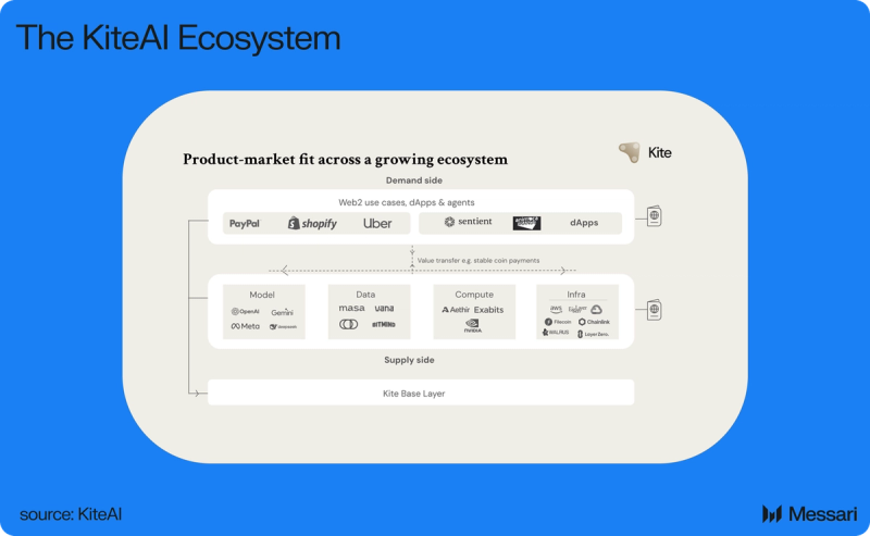 KiteAI’s partnerships with PayPal and Shopify are central to its go-to-market strategy, providing an immediate and scalable entry point into the real-world economy. By integrating with these two giants, KiteAI accesses a massive, pre-existing network of millions of merchants and consumers. This approach bypasses the difficult task of building a two-sided marketplace from scratch. Instead, it creates a tangible use case for agent-driven commerce where AI agents can autonomously discover products on Shopify and execute payments using PayPal’s stablecoin infrastructure. This allows KiteAI to bootstrap real-world economic activity and demonstrate immediate utility, providing a powerful incentive for developers to build agents and consumers to use them.