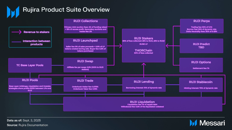 The result is a vertically integrated ecosystem that combines native asset support, advanced DeFi tools, and a sustainable fee-sharing model, with RUJI becoming the central token of the App Layer, accruing real yield from all economic activity across the platform.