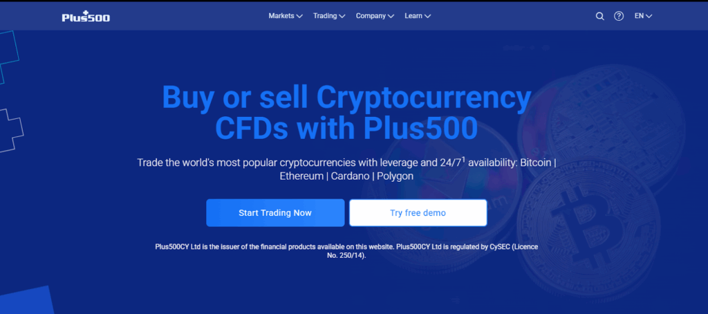 Like most CFD brokerage platforms, Plus500 does not charge commissions on crypto CFDs. Instead, they make money through the Spread. However, trades that remain open overnight attract financing fees because of margin trading. Cryptocurrencies are available to trade 24/7, including weekends.